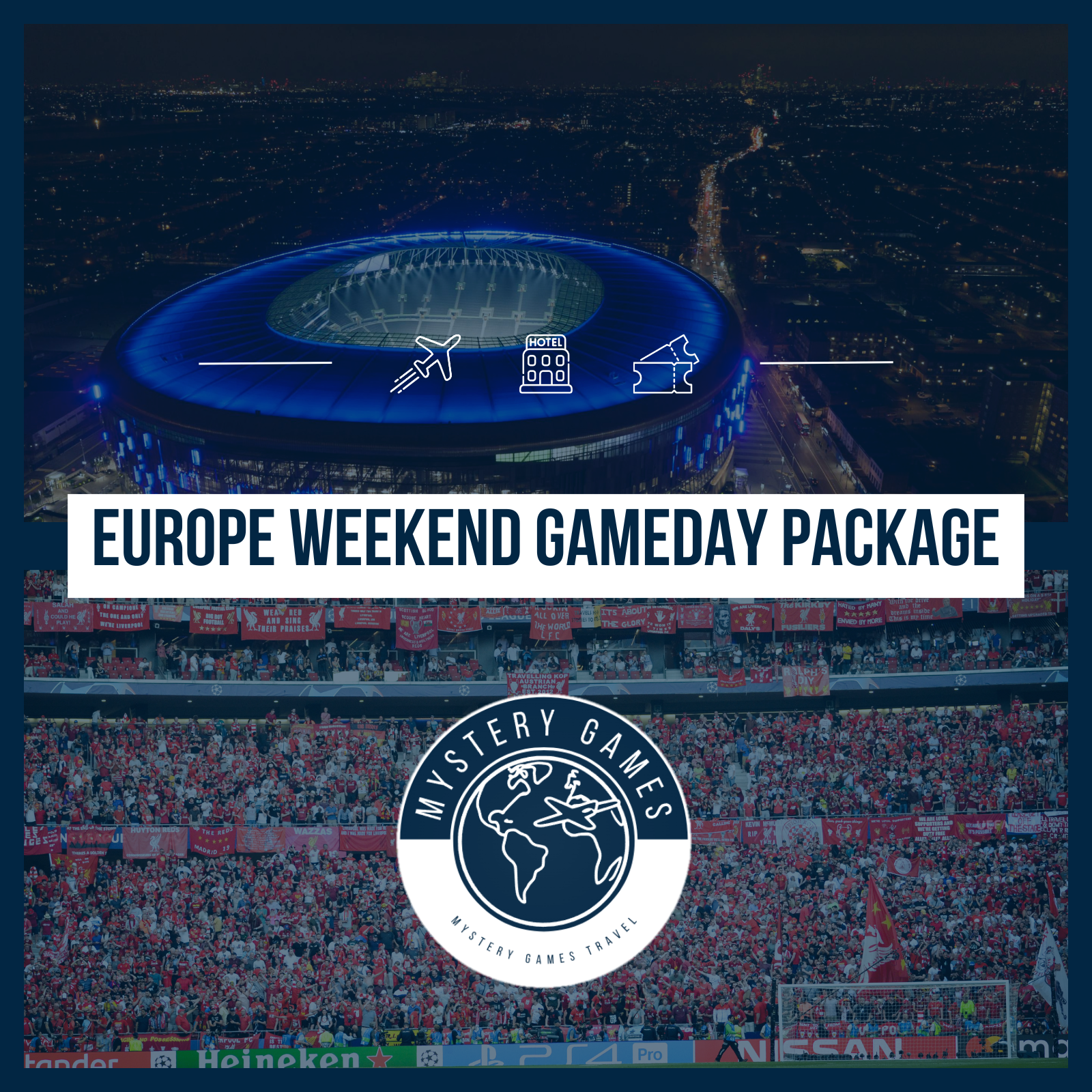 Das Weekend Gameday Package ist ideal für Fussballfans, die ein spannendes und unvergessliches Erlebnis suchen. Dieses Paket bietet dir die Möglichkeit, ein aufregendes Fussballspiel in Europa zu besuchen, die Atmosphäre eines Stadions zu geniessen und in einer komfortablen Unterkunft zu übernachten – alles eingebettet in einem aufregenden Überraschungserlebnis. Obwohl du beim Buchen nicht weisst, welches Spiel dich erwartet, kannst du dir sicher sein, dass es sich um ein aufregendes und einzigartiges Fussballerlebnis handelt. Alle Details, einschliesslich des Spiels und der Reiseziele, werden dir ca. 14–20 Tage vor der Abreise mitgeteilt, sodass du dich voll und ganz auf das bevorstehende Abenteuer freuen kannst. Deine Anreise erfolgt einen Tag vor dem Spiel, und die Abreise einen Tag nach dem Spieltag.
